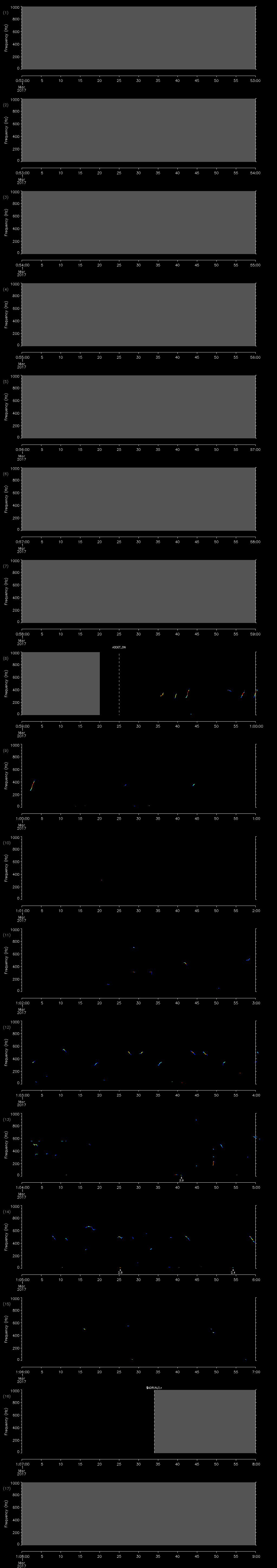 | Date/time | Sei whale | Fin whale | Right whale | Humpback whale | Other | Duration |