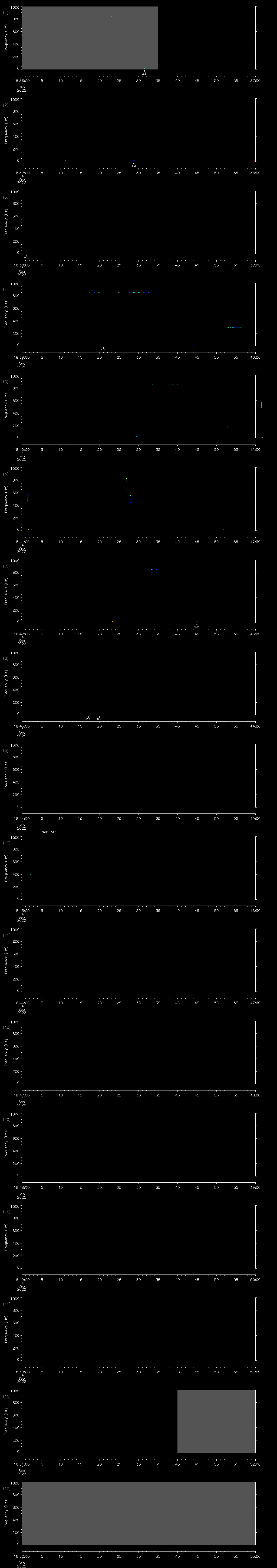 - MUTEON: the hydrophone is muted to assess system noise and to provide a time mark in the audio recording