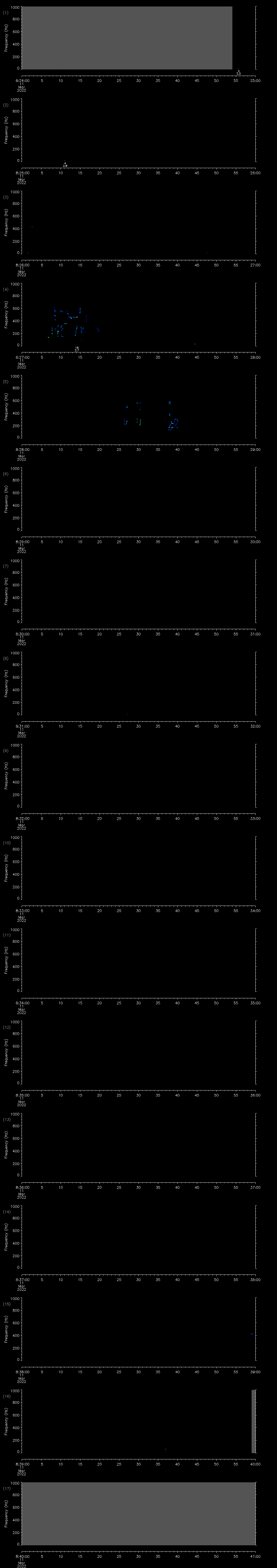 | Date/time | Sei whale | Fin whale | Right whale | Humpback whale | Other | Duration |