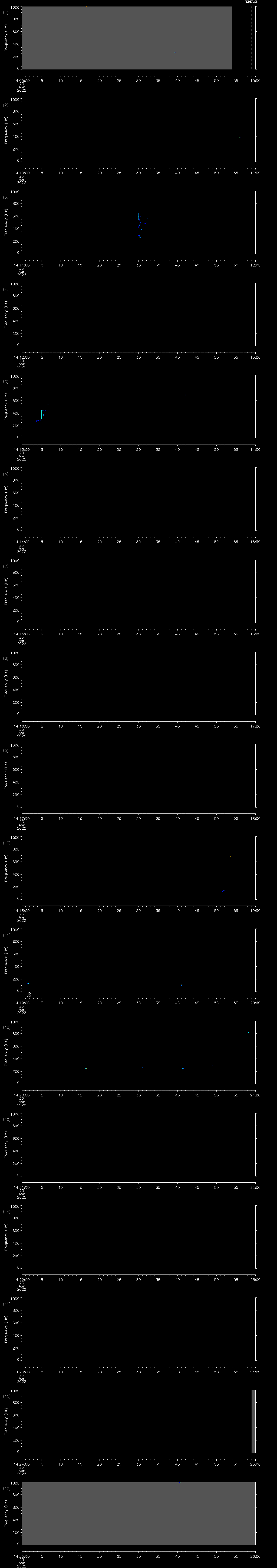 - MUTEON: the hydrophone is muted to assess system noise and to provide a time mark in the audio recording