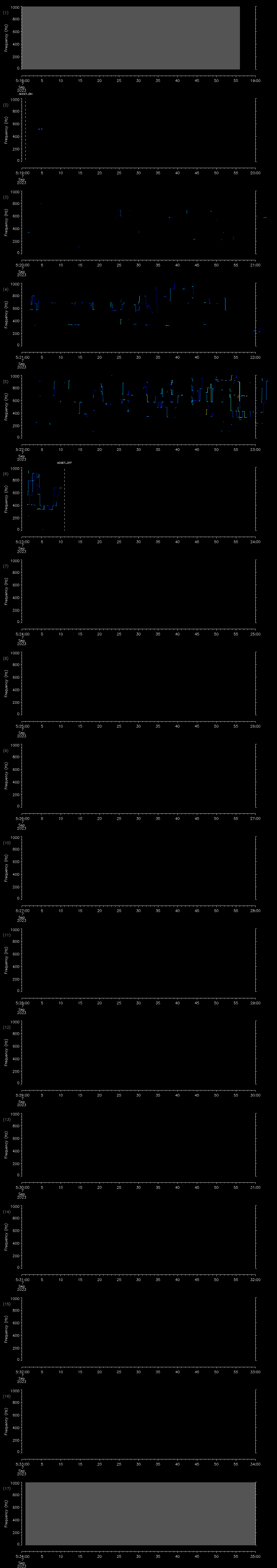 - MUTEON: the hydrophone is muted to assess system noise and to provide a time mark in the audio recording