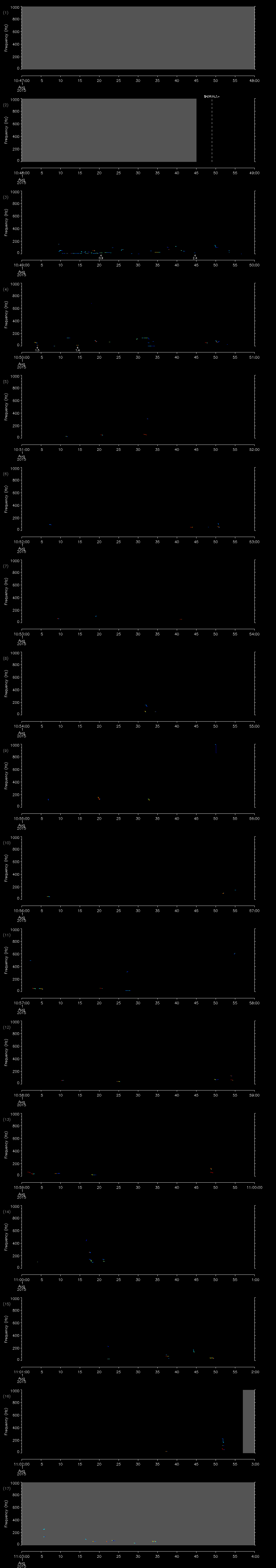 | Date/time | Sei whale | Fin whale | Right whale | Humpback whale | Other | Duration |
