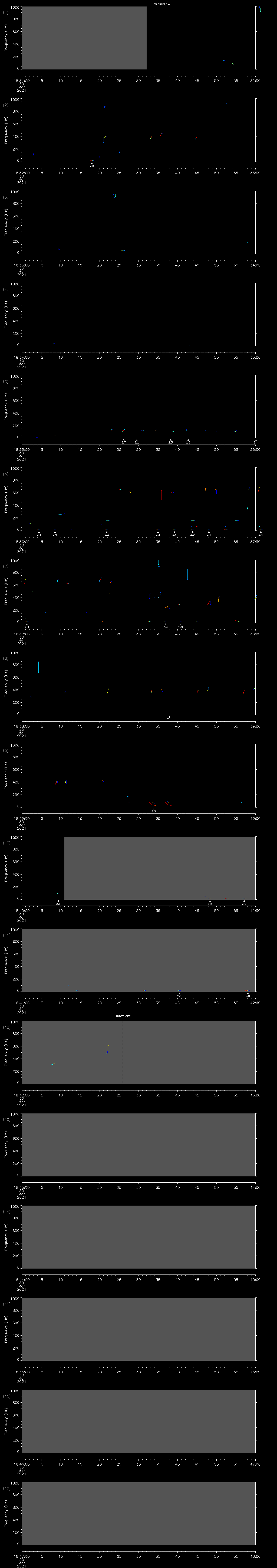 - MUTEON: the hydrophone is muted to assess system noise and to provide a time mark in the audio recording