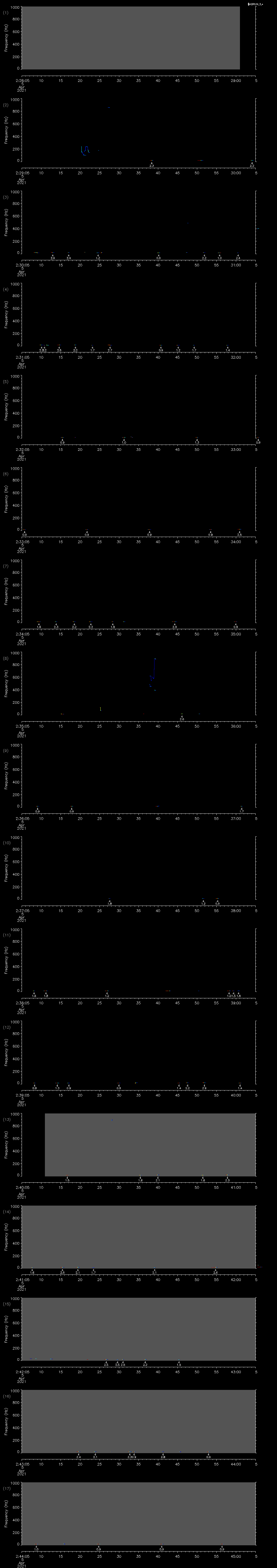 | Date/time | Sei whale | Fin whale | Right whale | Humpback whale | Other | Duration |