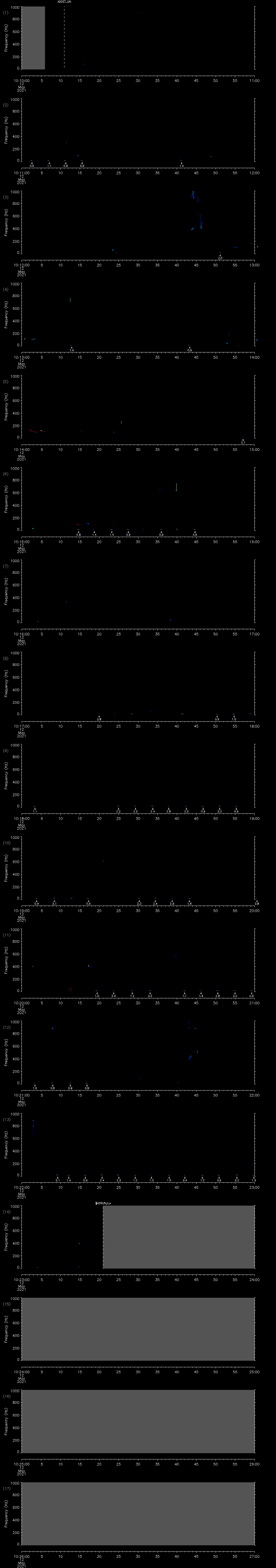 - MUTEON: the hydrophone is muted to assess system noise and to provide a time mark in the audio recording