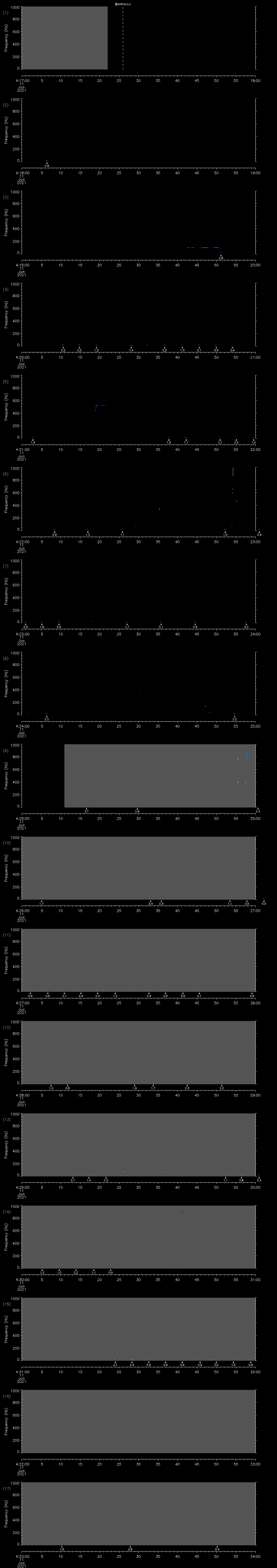 | Date/time | Sei whale | Fin whale | Right whale | Humpback whale | Other | Duration |
