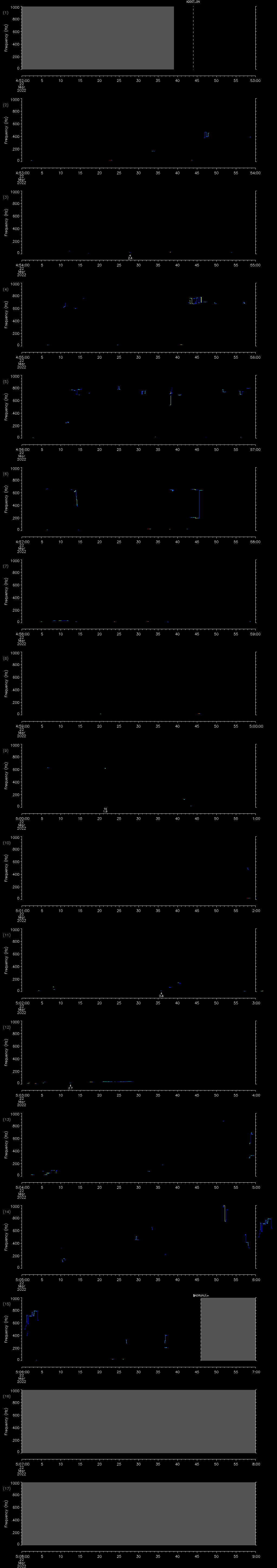 - MUTEON: the hydrophone is muted to assess system noise and to provide a time mark in the audio recording