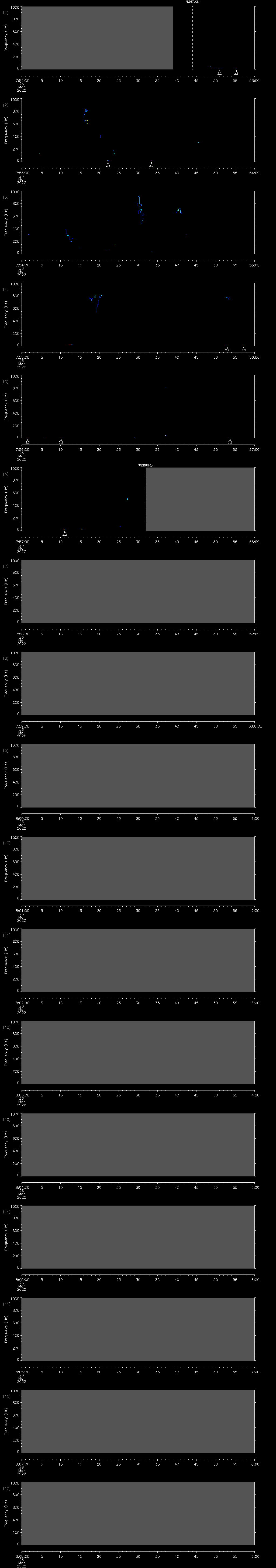 - MUTEON: the hydrophone is muted to assess system noise and to provide a time mark in the audio recording
