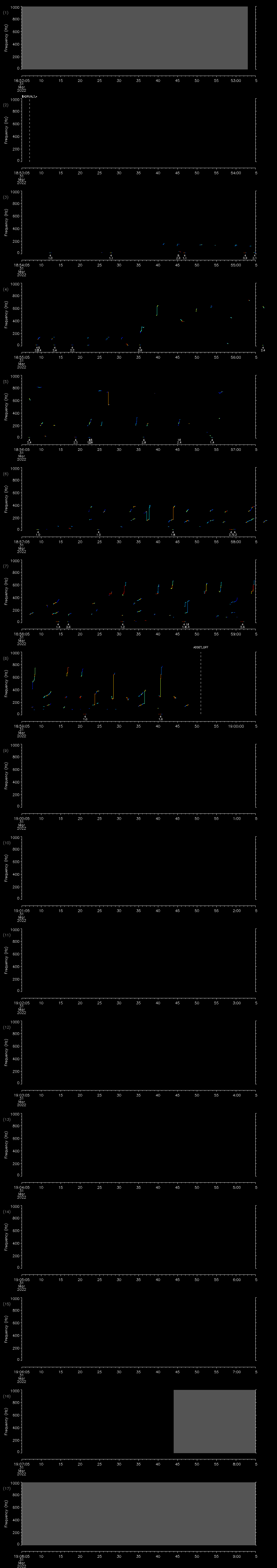 - MUTEON: the hydrophone is muted to assess system noise and to provide a time mark in the audio recording