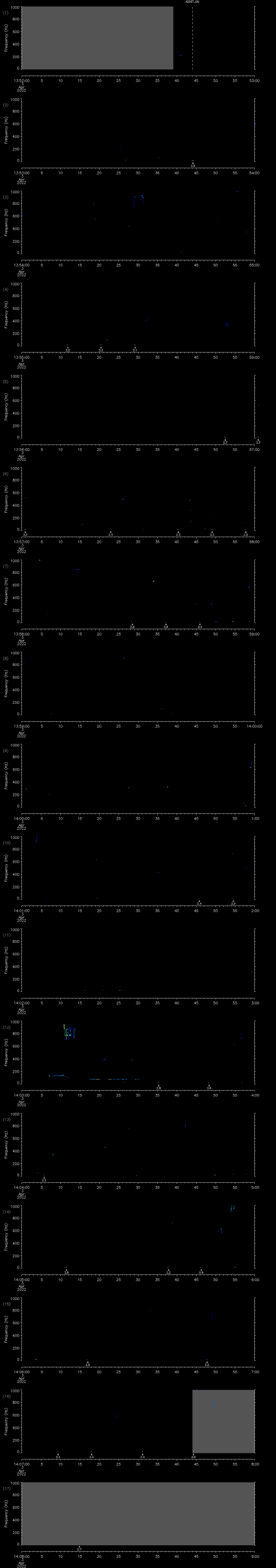 - MUTEON: the hydrophone is muted to assess system noise and to provide a time mark in the audio recording