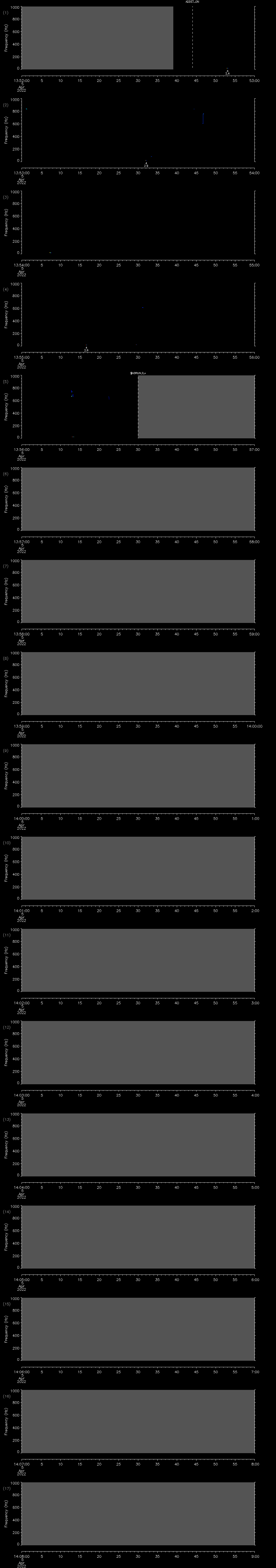 - MUTEON: the hydrophone is muted to assess system noise and to provide a time mark in the audio recording