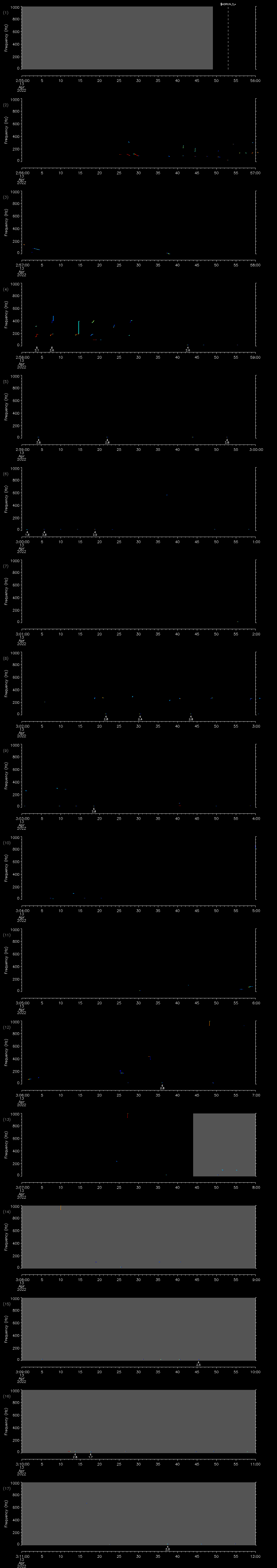 | Date/time | Sei whale | Fin whale | Right whale | Humpback whale | Other | Duration |