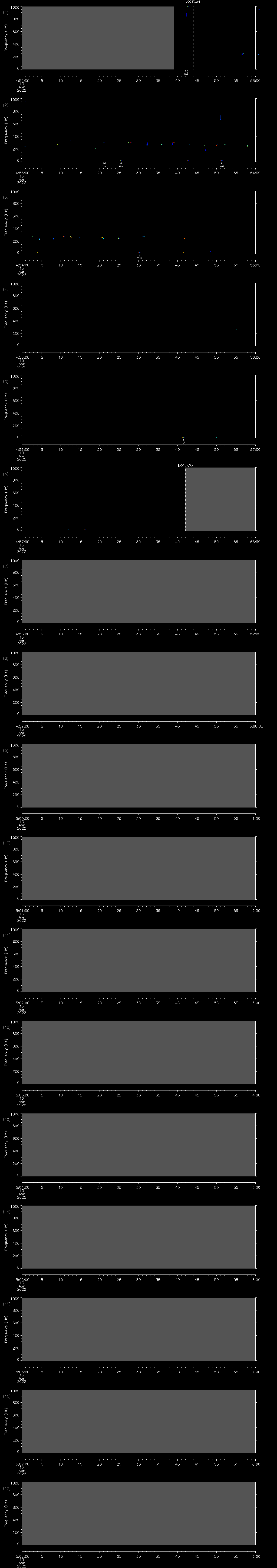 - MUTEON: the hydrophone is muted to assess system noise and to provide a time mark in the audio recording