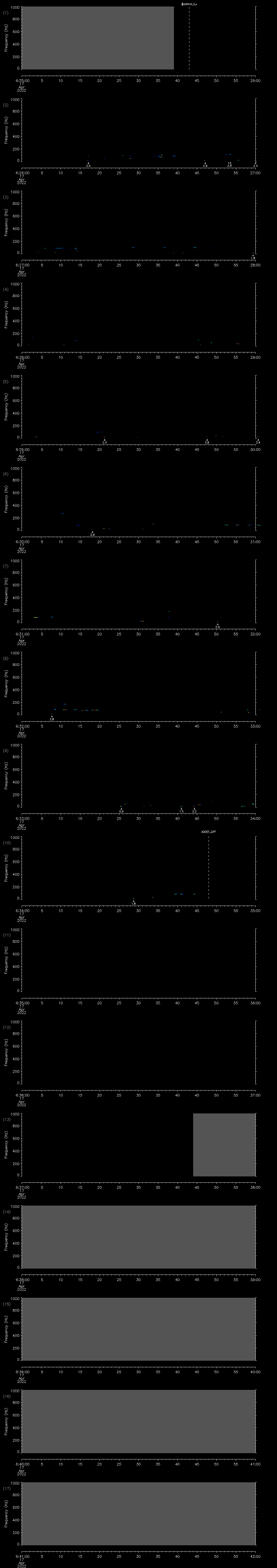 - MUTEON: the hydrophone is muted to assess system noise and to provide a time mark in the audio recording