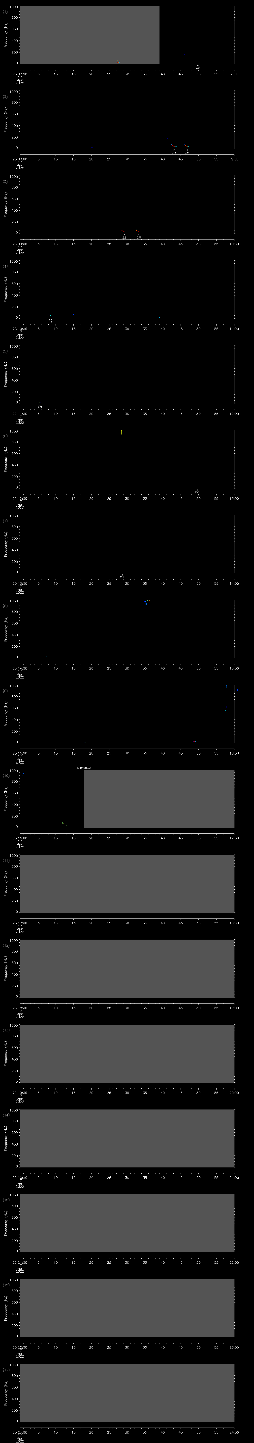 | Date/time | Sei whale | Fin whale | Right whale | Humpback whale | Other | Duration |