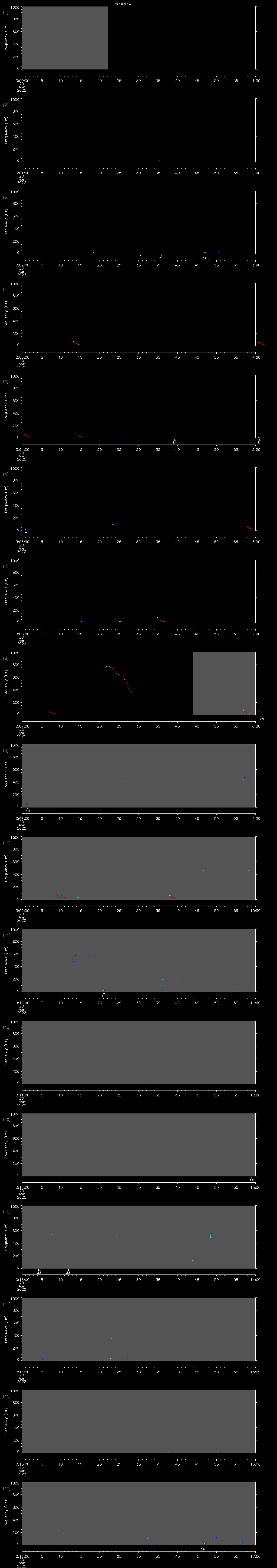 | Date/time | Sei whale | Fin whale | Right whale | Humpback whale | Other | Duration |