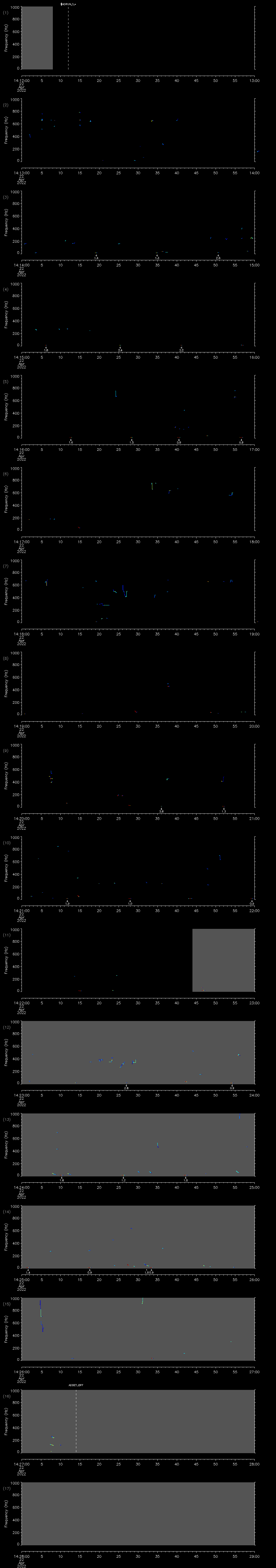 - MUTEON: the hydrophone is muted to assess system noise and to provide a time mark in the audio recording