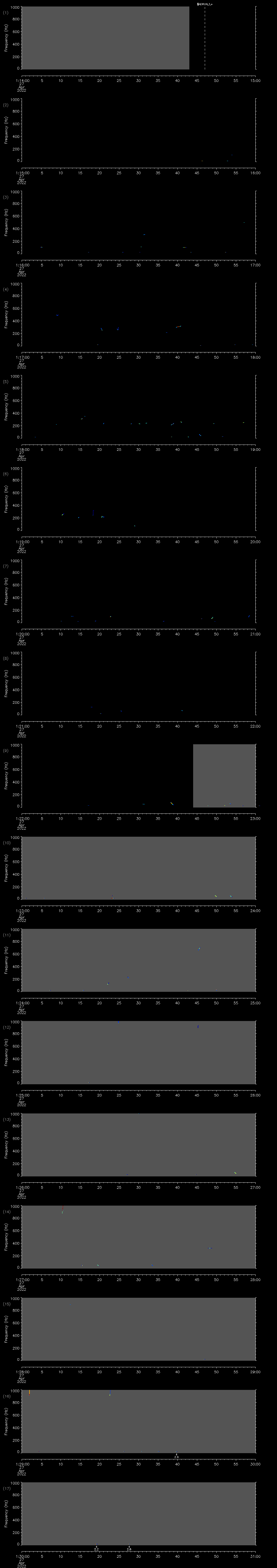 | Date/time | Sei whale | Fin whale | Right whale | Humpback whale | Other | Duration |