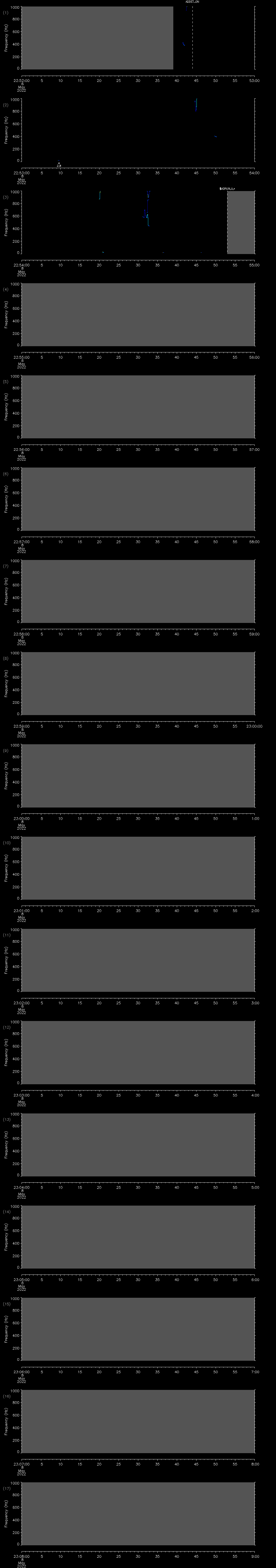 - MUTEON: the hydrophone is muted to assess system noise and to provide a time mark in the audio recording
