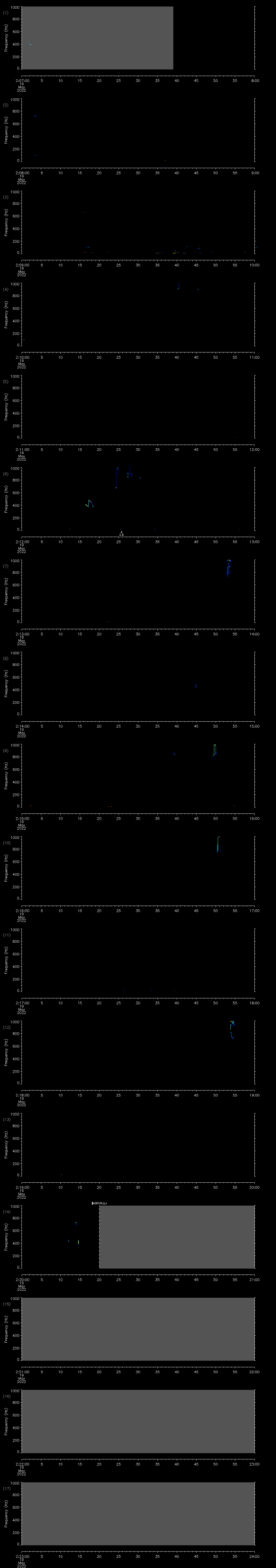 | Date/time | Sei whale | Fin whale | Right whale | Humpback whale | Other | Duration |