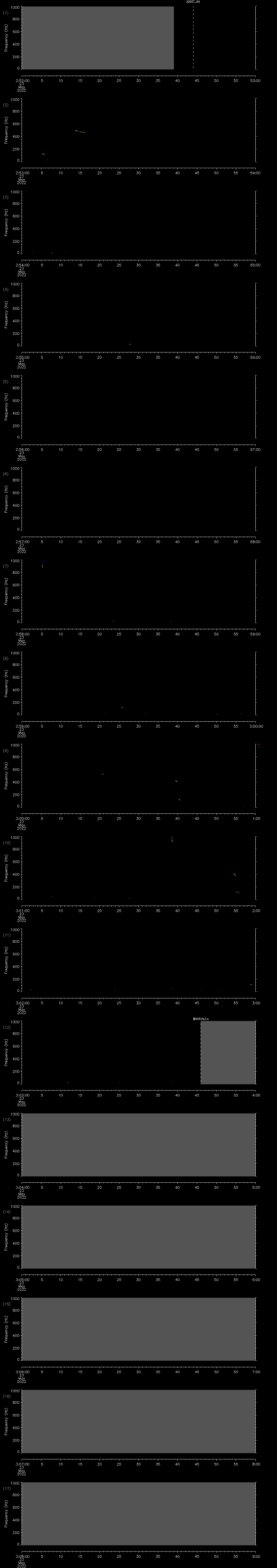 - MUTEON: the hydrophone is muted to assess system noise and to provide a time mark in the audio recording