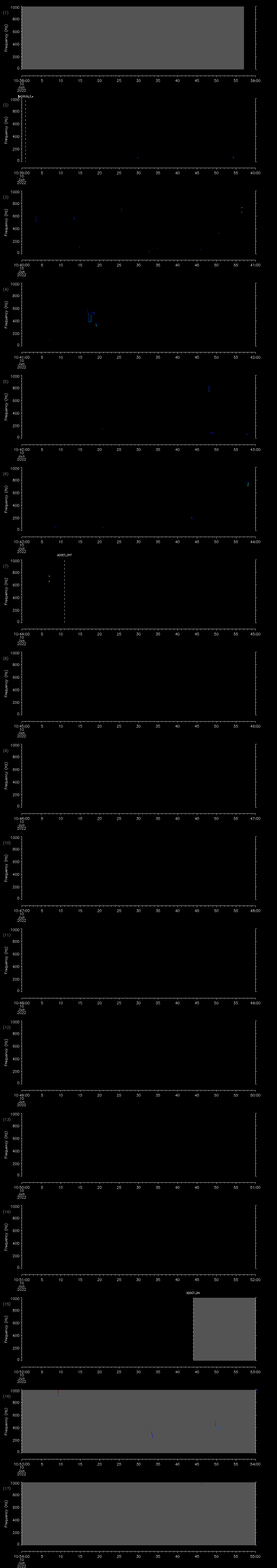 - MUTEON: the hydrophone is muted to assess system noise and to provide a time mark in the audio recording