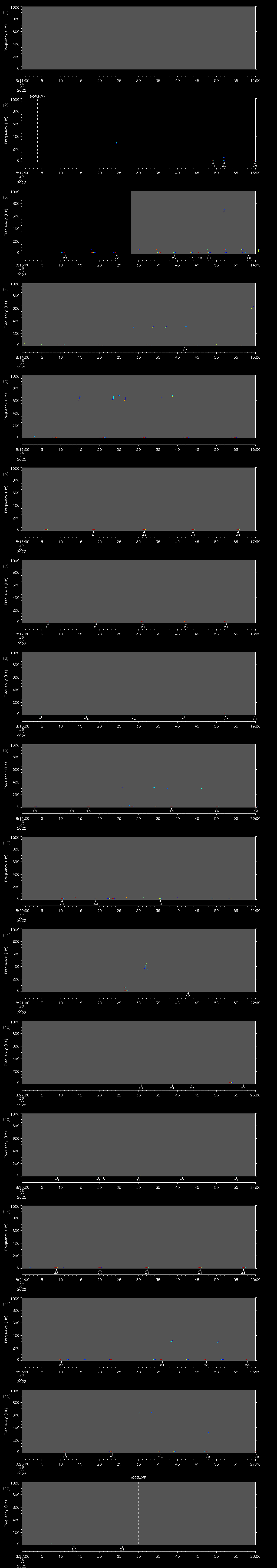 - MUTEON: the hydrophone is muted to assess system noise and to provide a time mark in the audio recording