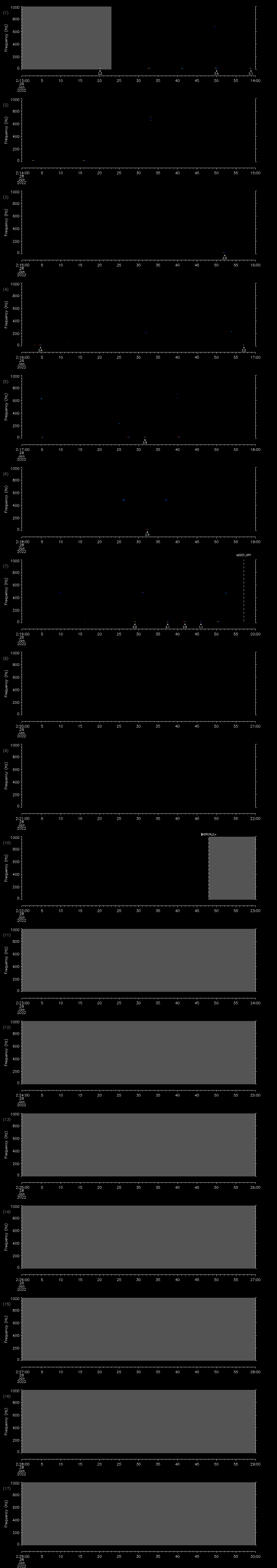 - MUTEON: the hydrophone is muted to assess system noise and to provide a time mark in the audio recording