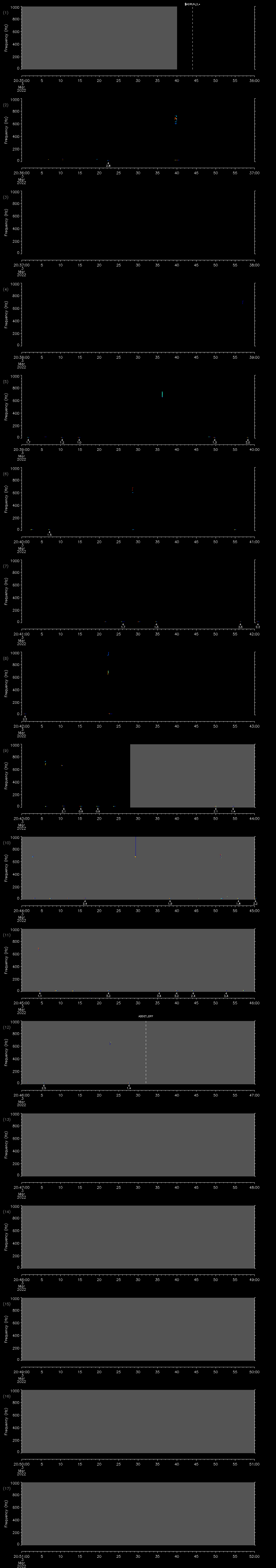 - MUTEON: the hydrophone is muted to assess system noise and to provide a time mark in the audio recording
