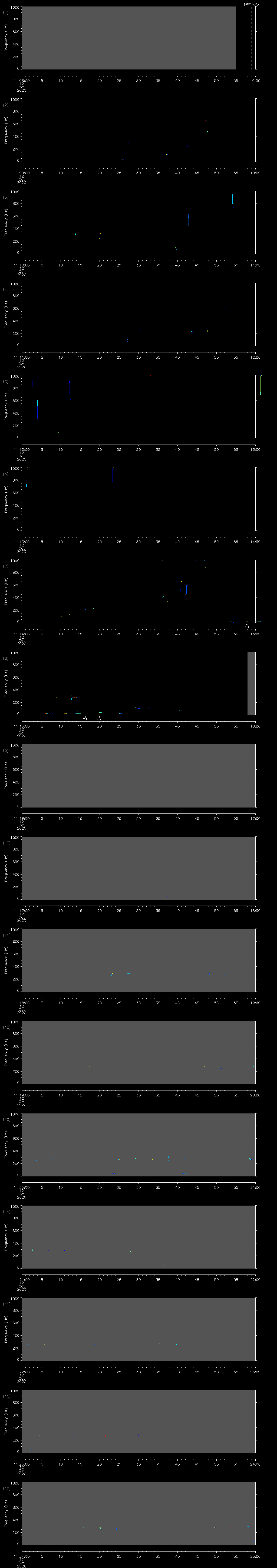 | Date/time | Sei whale | Fin whale | Right whale | Humpback whale | Other | Duration |