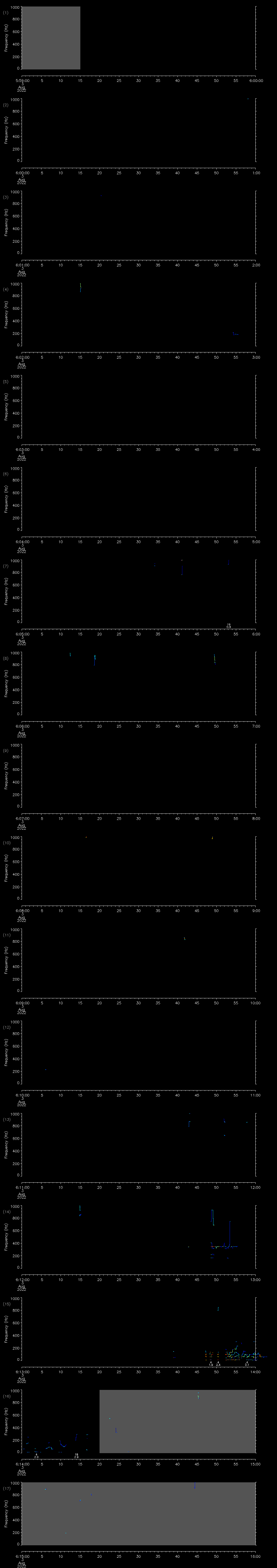 | Date/time | Sei whale | Fin whale | Right whale | Humpback whale | Other | Duration |