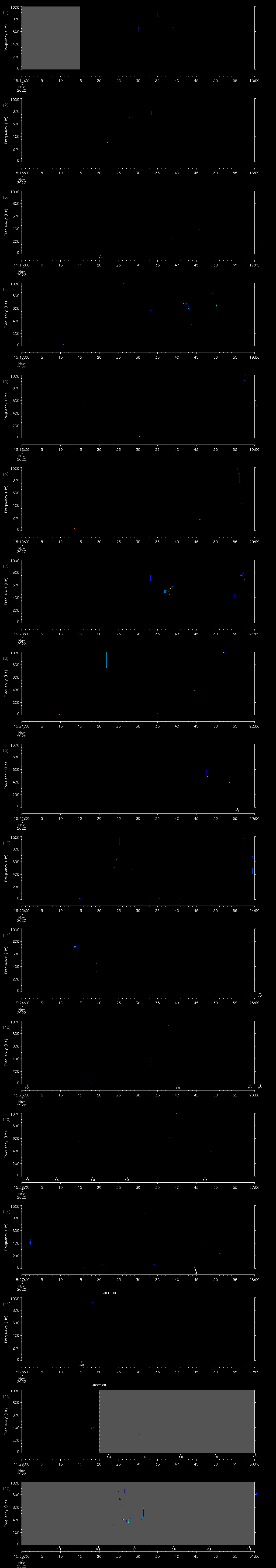 - MUTEON: the hydrophone is muted to assess system noise and to provide a time mark in the audio recording