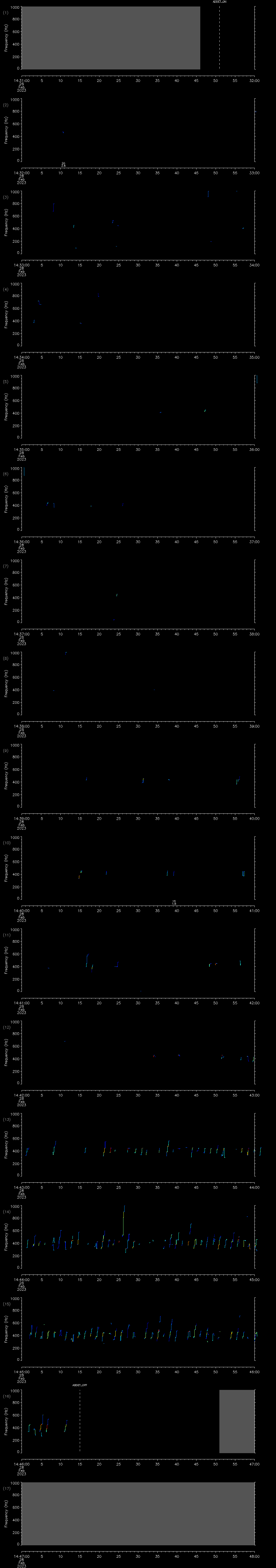 - MUTEON: the hydrophone is muted to assess system noise and to provide a time mark in the audio recording