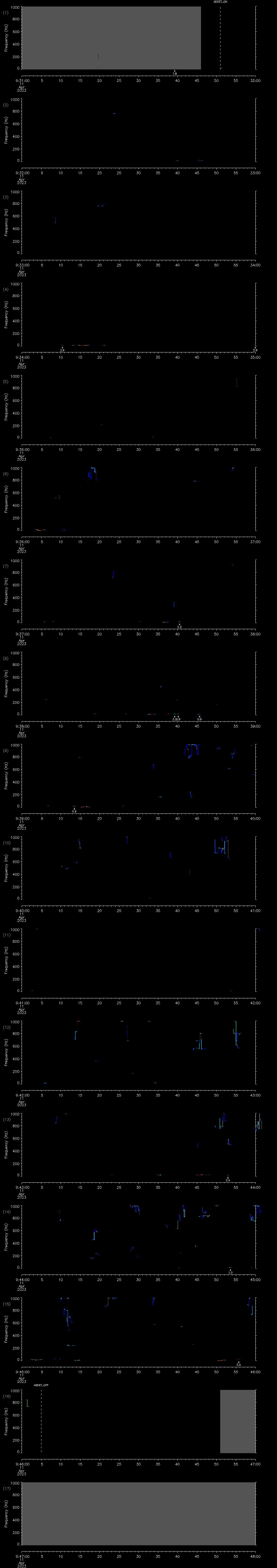 - ADDET_OFF: a maximum of 8 KB of pitch track data per hour is transmitted by the glider. The ADDET_OFF message indicates that this limit has been reached.