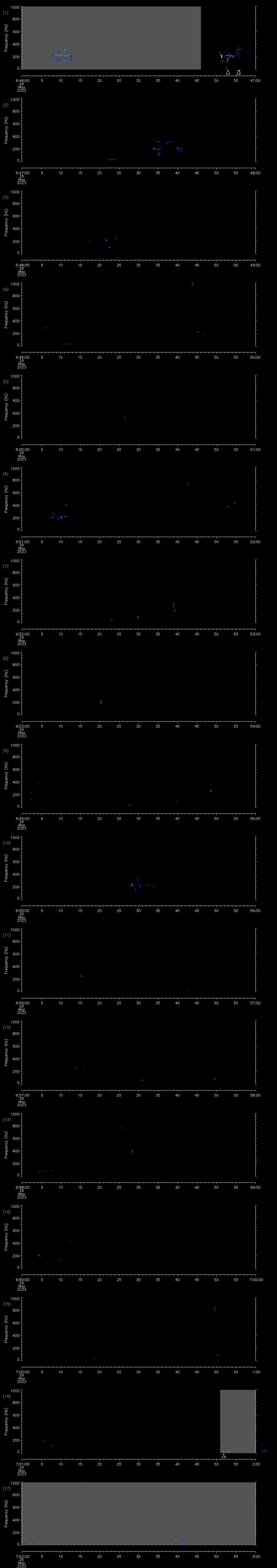 | Date/time | Sei whale | Fin whale | Right whale | Humpback whale | Other | Duration |