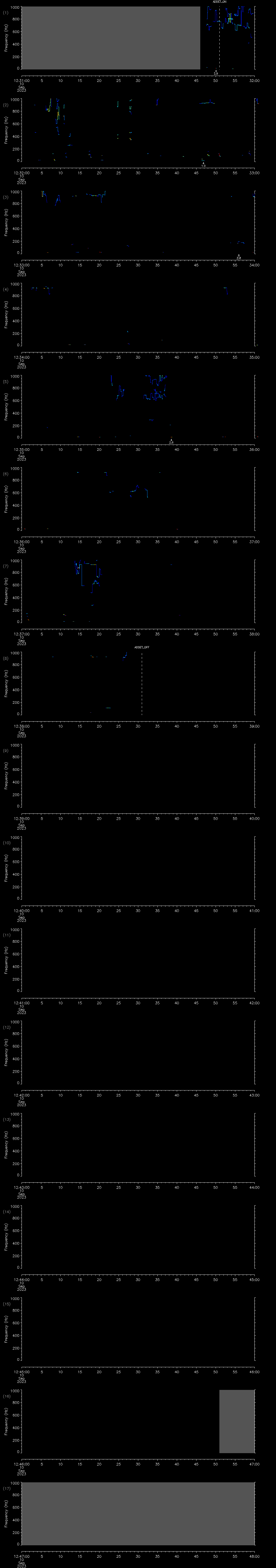 - MUTEON: the hydrophone is muted to assess system noise and to provide a time mark in the audio recording
