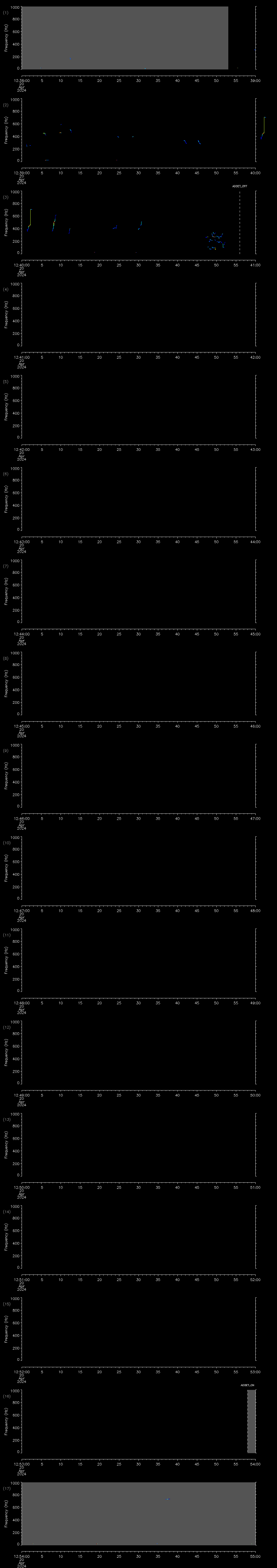- MUTEON: the hydrophone is muted to assess system noise and to provide a time mark in the audio recording
